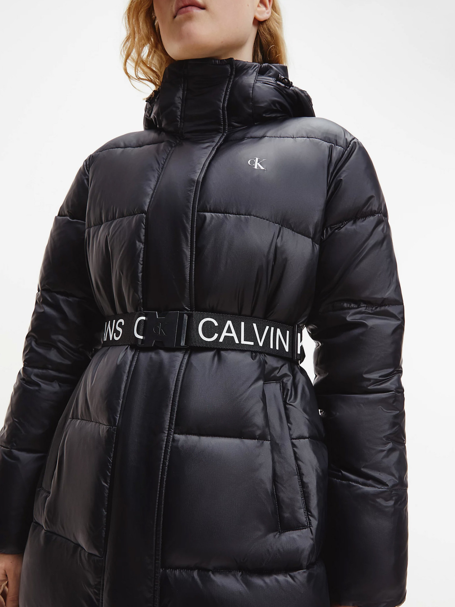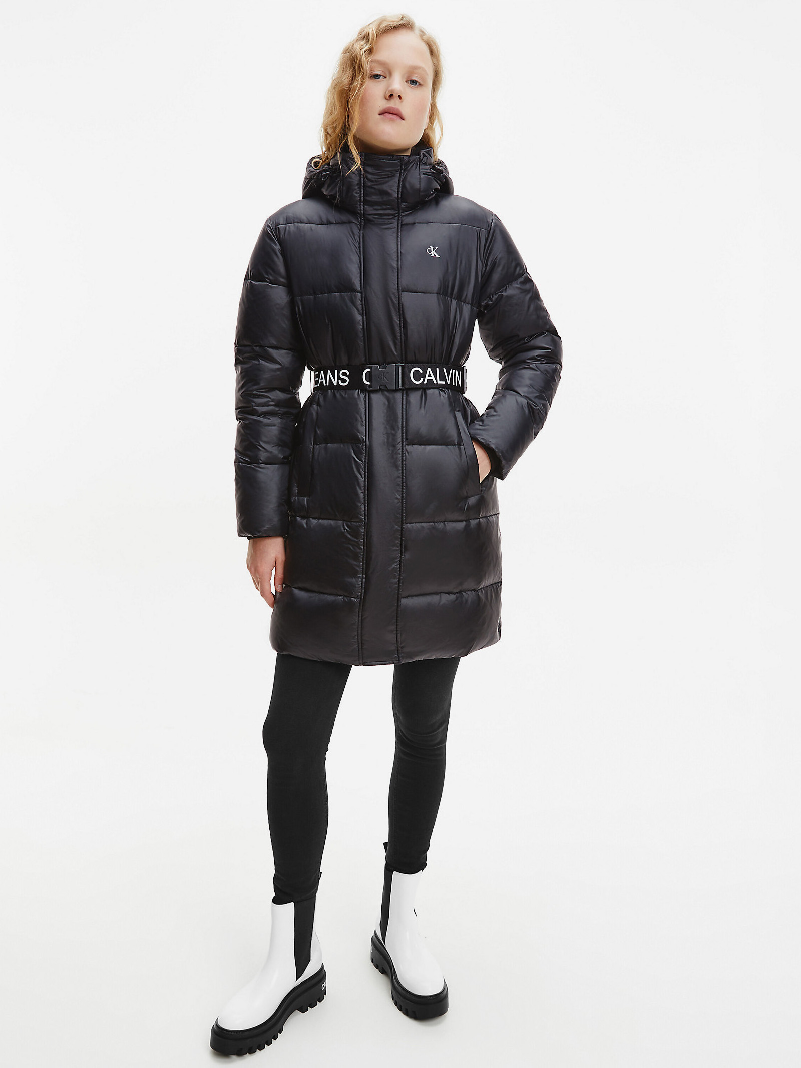 Calvin Klein, Jachetă de iarnă neagră matlasată pentru femei, cu glugă detașabilă Negru, Masura S/M-J20J216885